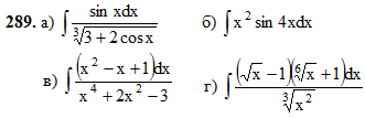 281 – 290. Найти неопределенные интегралы. В двух первых примерах [п. а) и б)] проверить результаты дифференцированием.